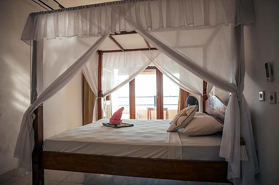 Spacious air-conditioned room features a fan, mosquito net, kitchenette and a balcony overlooking the sea and garden. Private bathroom offers free toiletries and hot water facilities.
